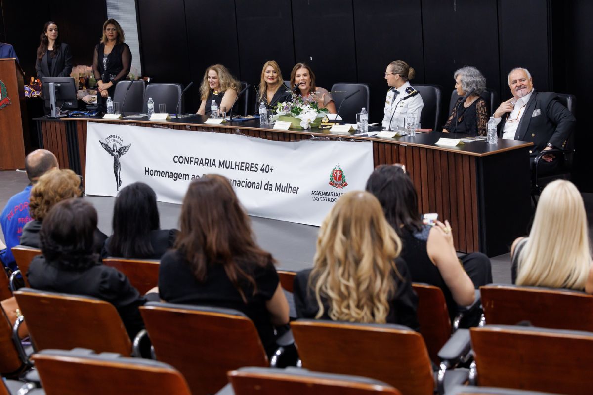 A Assembleia Legislativa do Estado de São Paulo sediou, na noite desta segunda-feira (23), um ato solene em referência ao Dia Internacional da Mulher, por iniciativa da sociedade civil. Mais de 30 mulheres - entre elas a deputada Valéria Bolsonaro (PL) - tiveram suas trajetórias profissionais reconhecidas pela Confraria Mulheres 40+.