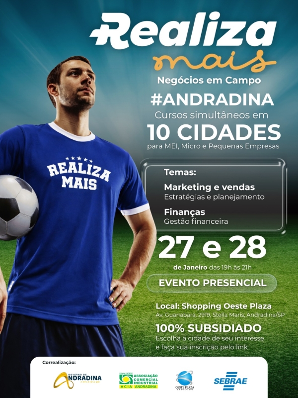 O Sebrae realiza, nos dias 27 e 28 de janeiro de 2026, em Andradina, o evento Realiza Mais –...