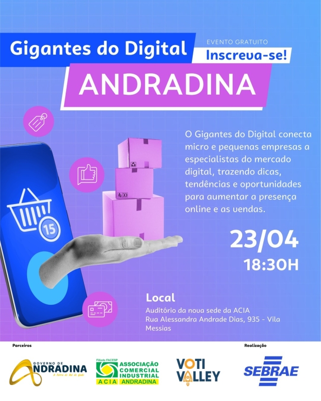 Empreendedores de Andradina e região terão a oportunidade de ampliar seus conhecimentos sobre o mercado digital em um evento voltado ao crescimento de negócios por meio da internet. A palestra “Alavancando vendas online com a Shopee” será realizada no dia 23 de abril, reunindo conteúdo prático e estratégias voltadas para quem deseja aumentar as vendas e ganhar visibilidade no ambiente online.