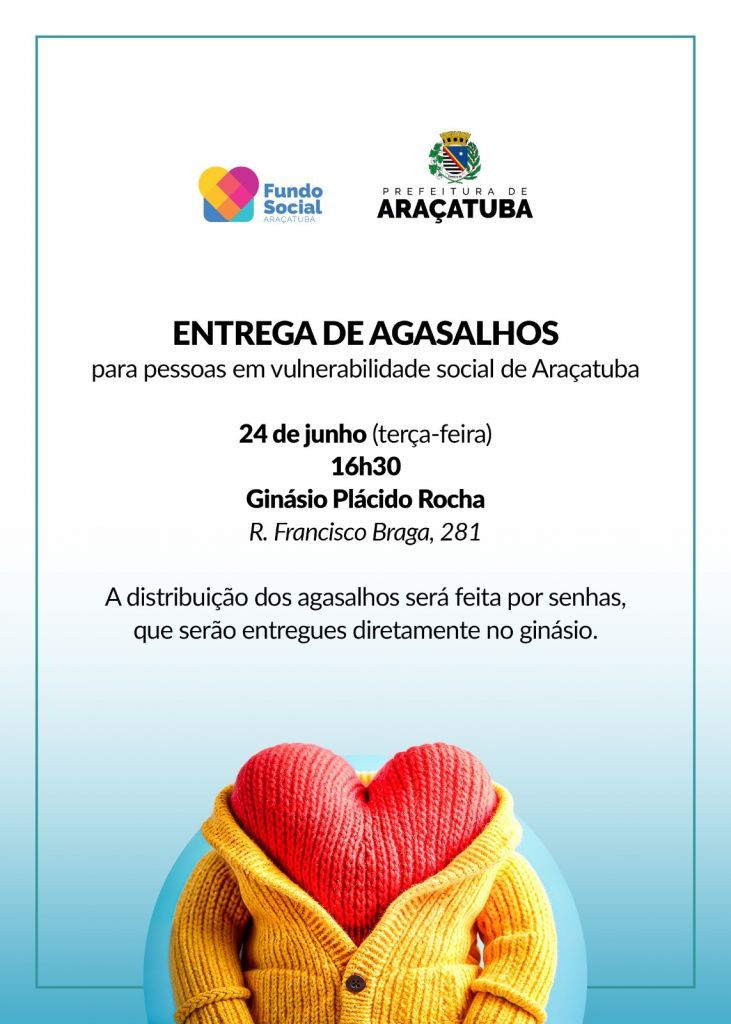 Para receber os agasalhos, é necessário apresentar um documento oficial com foto. Pais e responsáveis poderão retirar peças para os filhos, desde que apresentem um documento da criança ou adolescente.