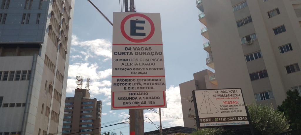Com o fim das festas de fim de ano, as vagas de curta duração no centro comercial de Araçatuba começam a operar, agora, das 8h às 18h.