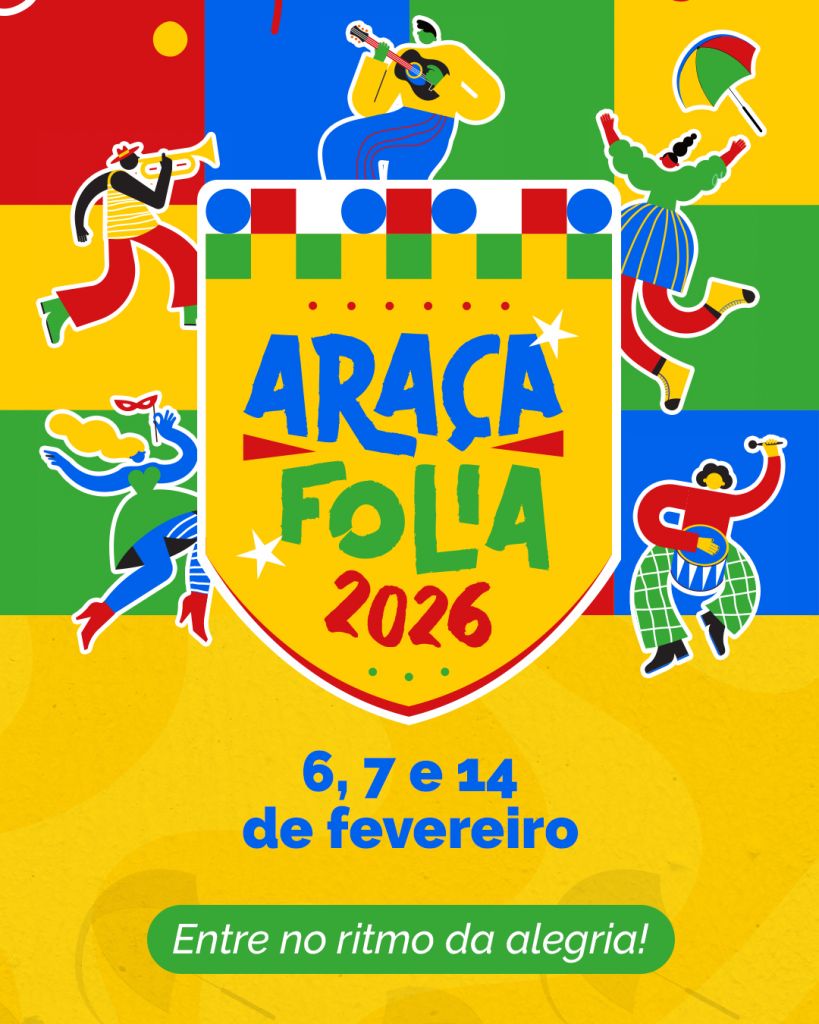 Inspirado no carnaval pernambucano, uma das mais populares manifestações carnavalescas do Brasil, o Araçafolia 2026 será realizado entre 6 e 14 de fevereiro.
