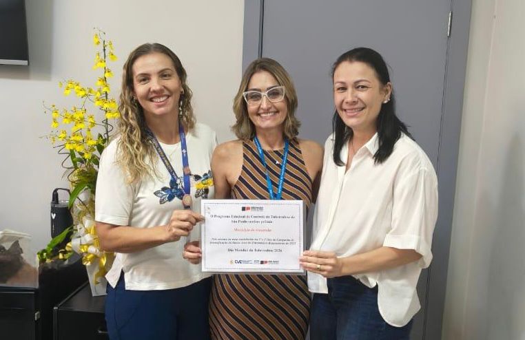 O certificado foi entregue nessa segunda-feira (30) à secretária de Saúde, Lucila Bistaffa. Também estavam presentes a diretora da Vigilância Sanitária e Epidemiológica, Priscila Cestaro, e a diretora da Assistência Básica, Regina Holland.