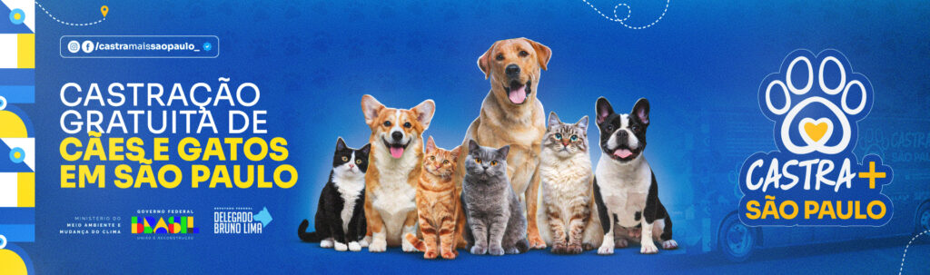 O Castra+ São Paulo promove o controle populacional de cães e gatos, ampliando o acesso às políticas públicas de bem-estar animal. A ação será realizada na sede da SMMAS, que fica na área da Fazenda do Estado, no Bairro Aviação, de dia 29 de abril até 3 de maio.