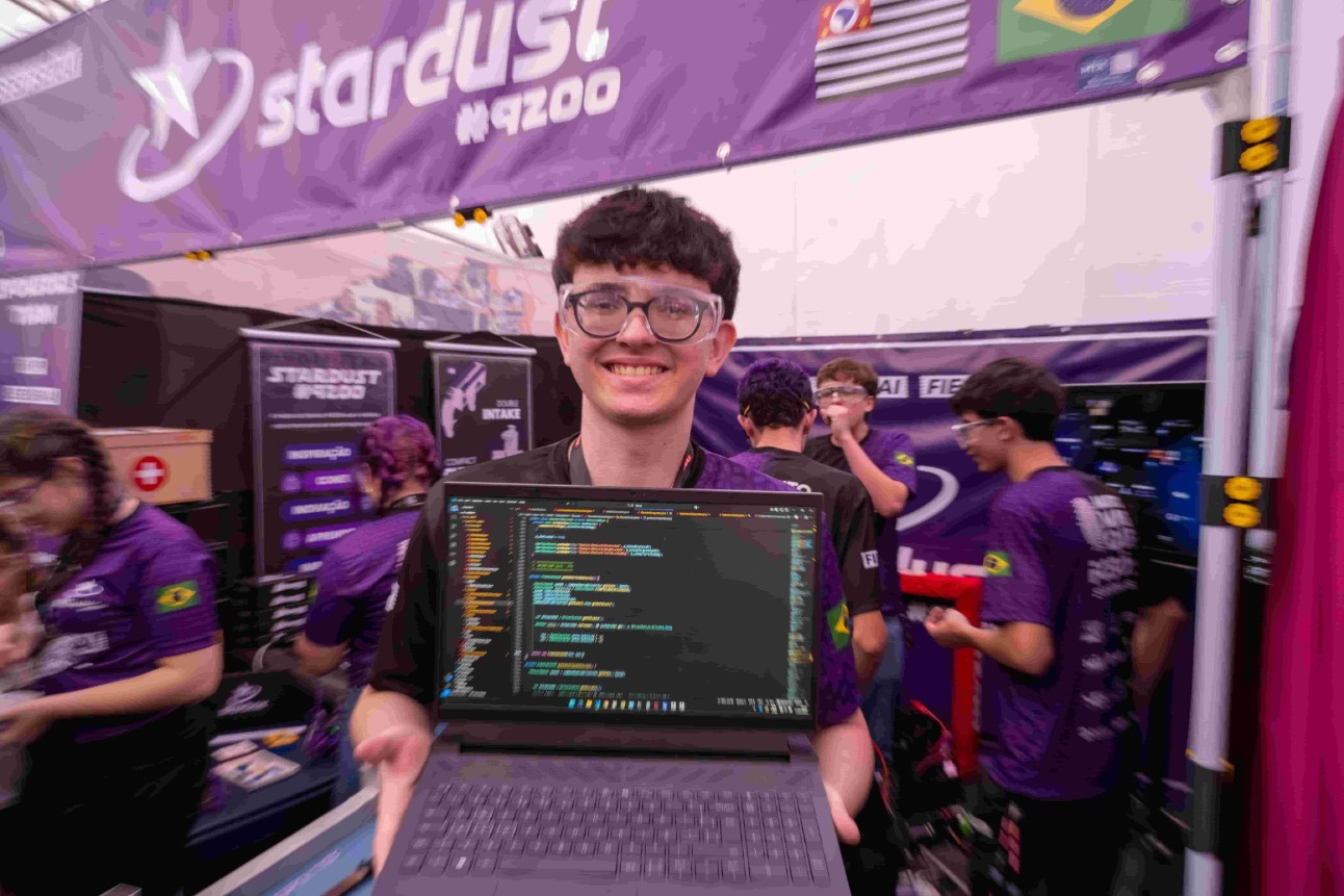 “A IA, em si, facilita o meio de entendimento dos alunos, o que não compreendemos dentro da programação, ela ensina a forma como podemos trabalhar. Não entregando o resultado, mas sim, ensinando o estudante”, enfatiza Luíz Felipe Dalfrê, 16 anos, programador da equipe 9200 SESI SENAI Stardust, do SESI 005 e SENAI Luiz Varga, de São Paulo.