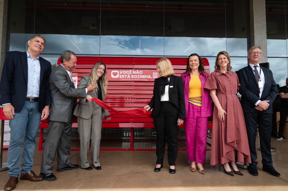 A iniciativa integra o movimento promovido pelo Instituto Banco Vermelho (IBV) e reforça o compromisso da indústria brasileira com a defesa da vida e dos direitos das mulheres. A mensagem estampada na estrutura - “Sentar e refletir. Levantar e agir” - sintetiza o chamado à participação da sociedade.