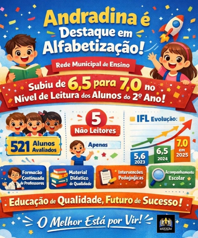 Com esse desempenho, Andradina se consolida como referência regional em fluência leitora, demonstrando que investimentos planejados e ações consistentes na educação pública geram resultados concretos e transformadores para o futuro das crianças, afinal, como de forma sábia diz a Secretária de Educação do município, Estela Goda, “o melhor está por vir”.