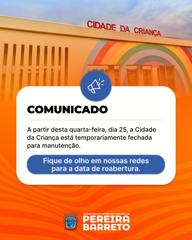 A Prefeitura de Pereira Barreto informou que a Cidade da Criança será fechada temporariamente para manutenção a partir desta quarta-feira, dia 25. A medida tem como objetivo a realização de serviços necessários para garantir a segurança, a conservação do espaço e melhores condições de uso para a população. O local permanecerá sem atendimento ao público […]